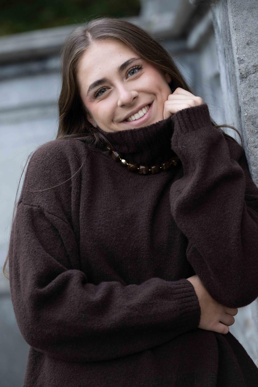 Un essentiel cocooning qui allie confort et élégance. On aime sa coupe ample et son col montant qui enveloppe délicatement, parfait pour affronter les journées fraîches avec douceur et style.