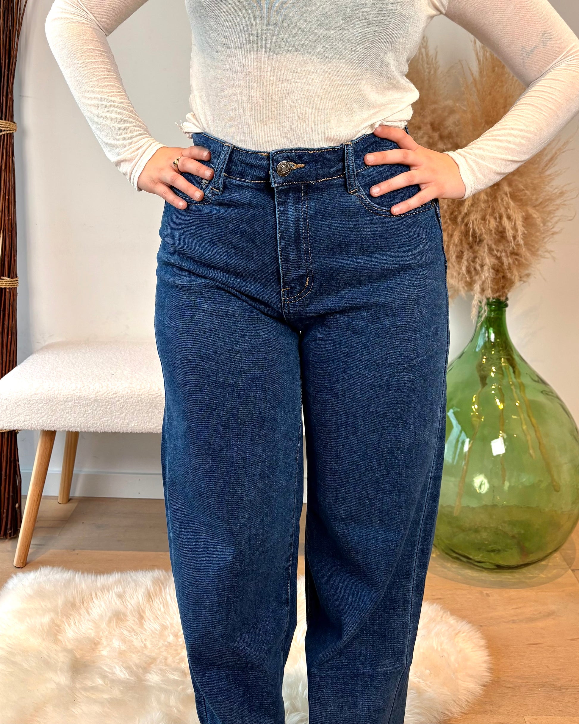 - Modèle wide legs : coupe large et tendance