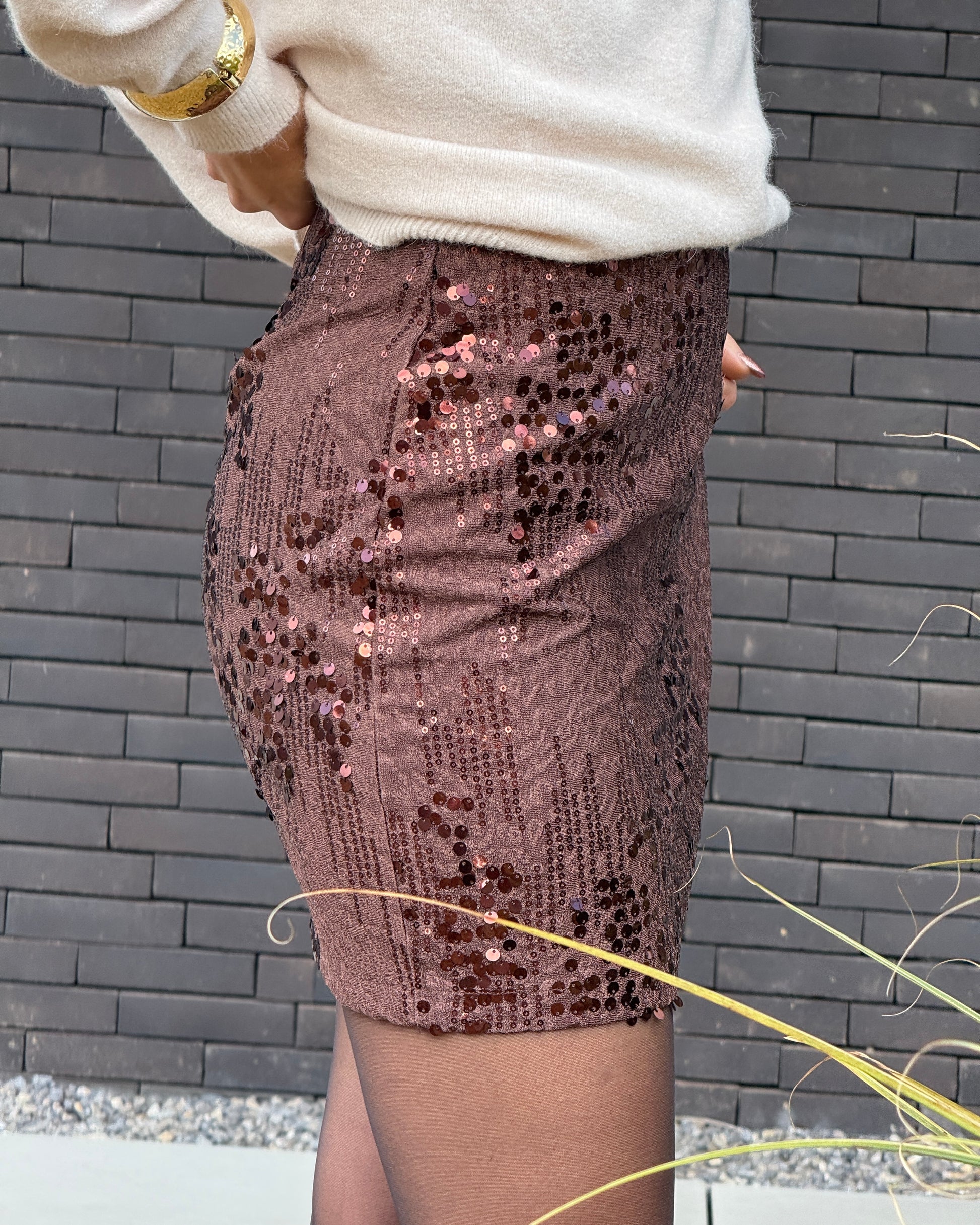 - Couleur chocolat à sequins ton sur ton