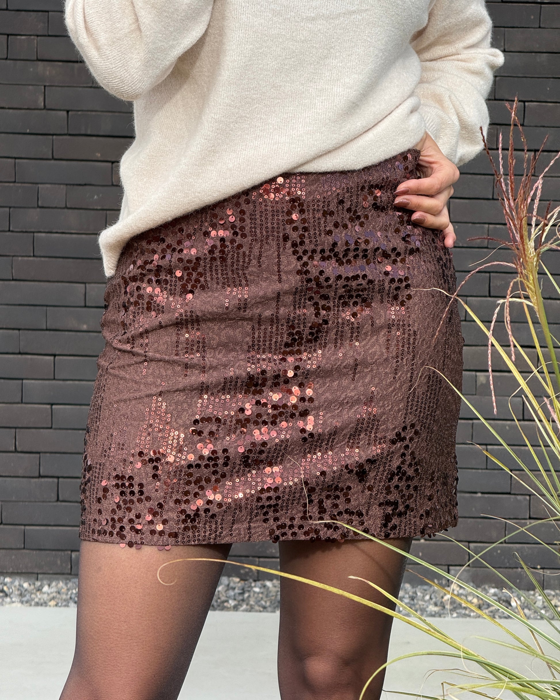 La jupe Lyra brille par son élégance et son allure festive. Entièrement recouverte de sequins, elle capte la lumière à chaque mouvement pour un look glamour et audacieux. Parfaite pour une soirée ou pour twister une tenue casual chic.