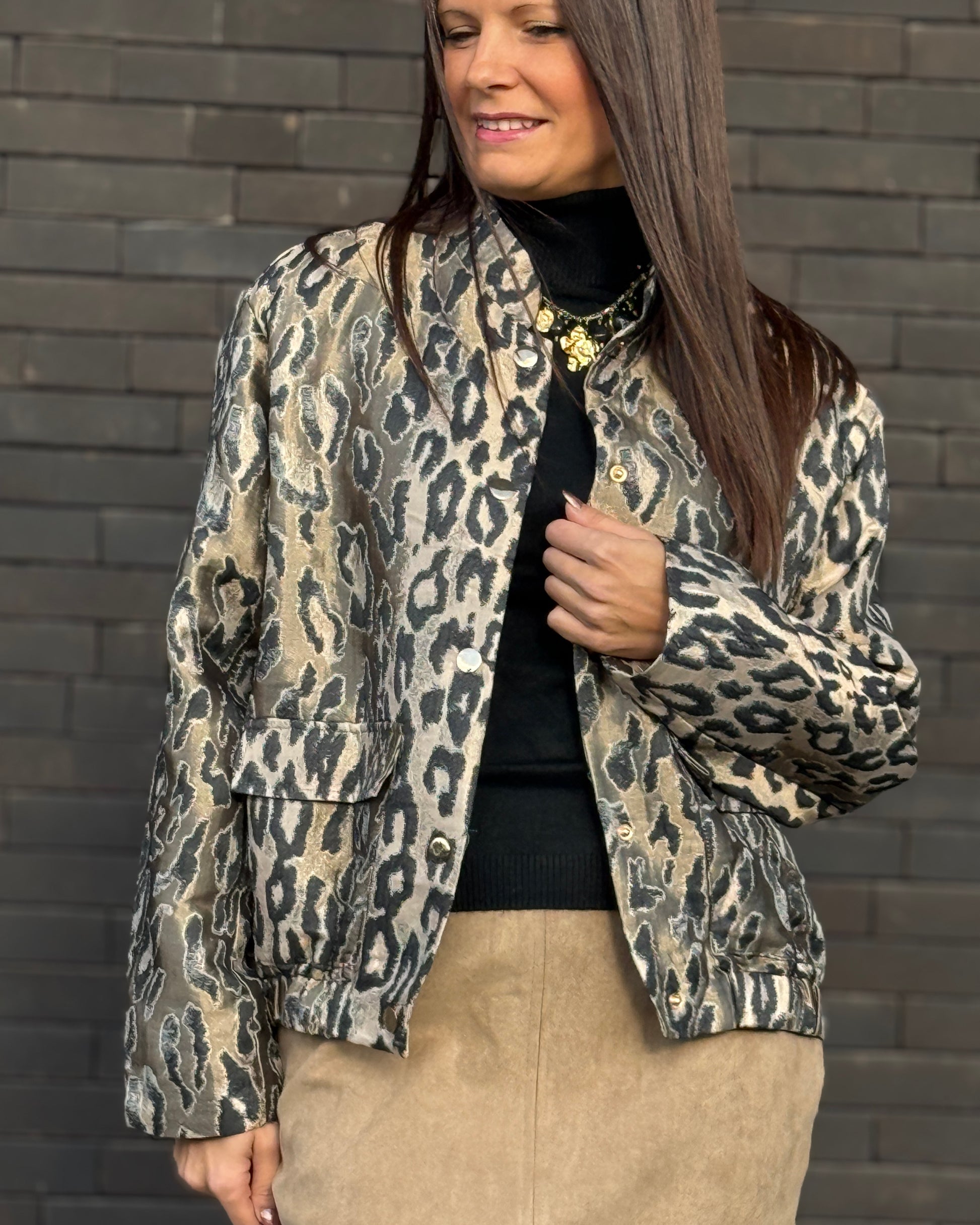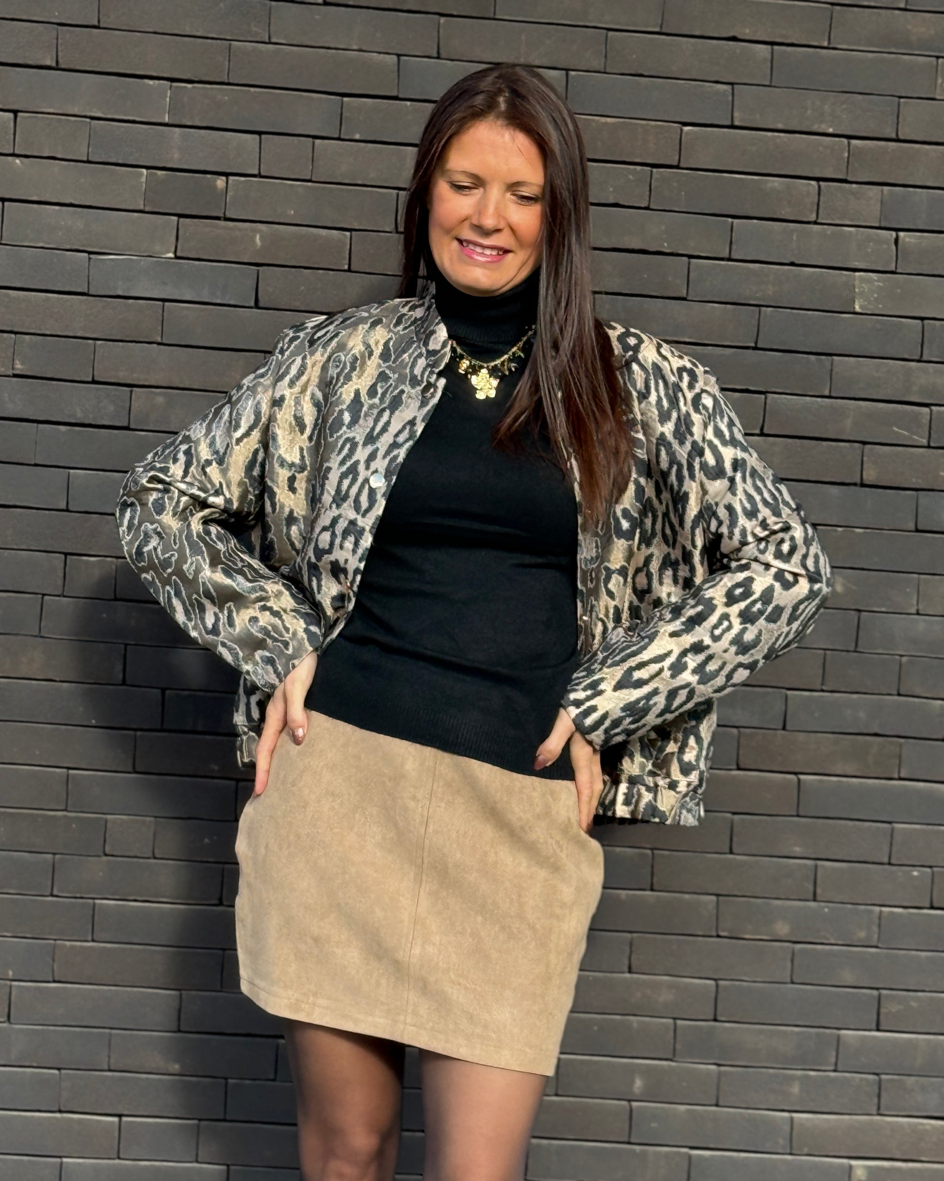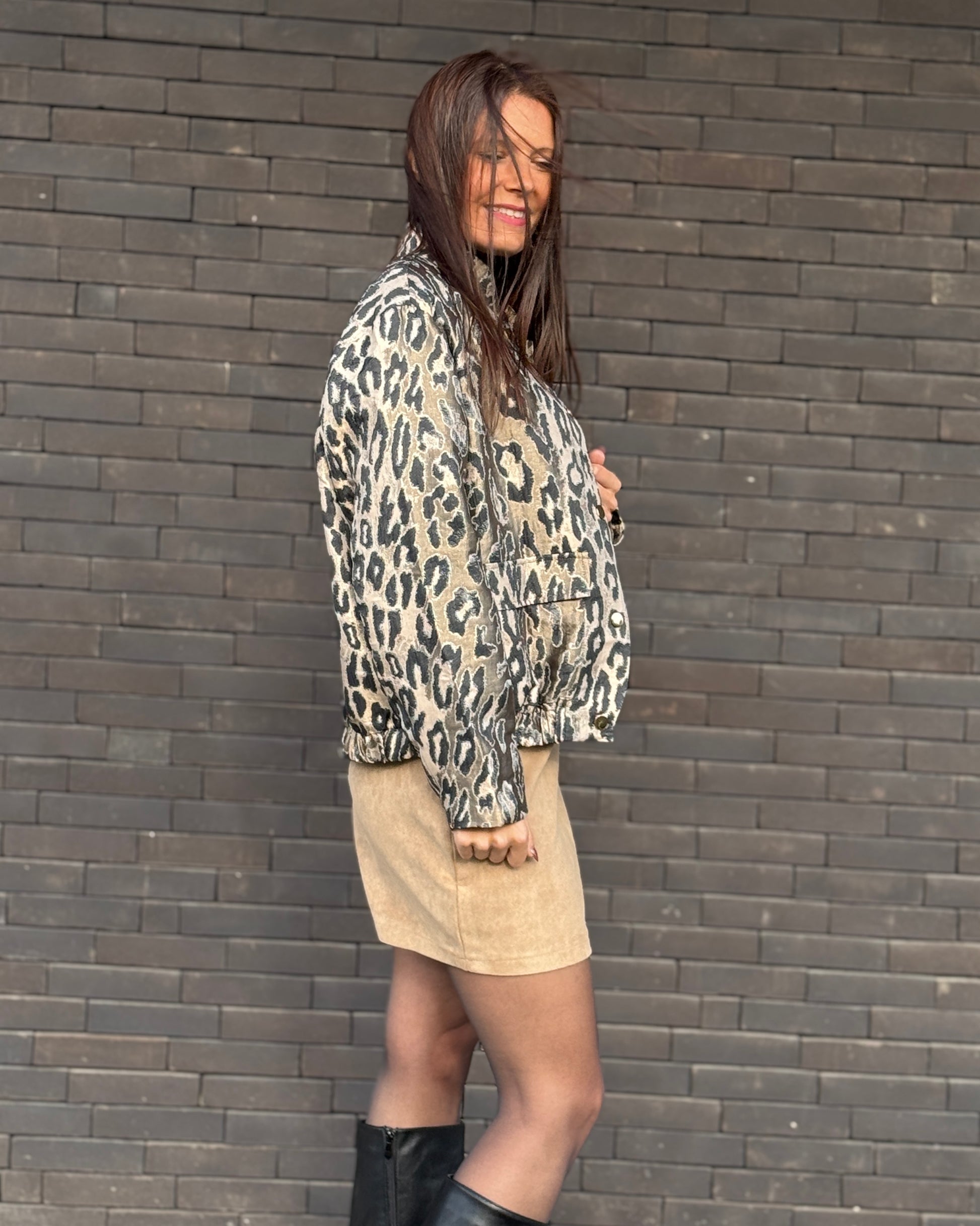 Son satin imprimé léopard et sa coupe moderne apportent une touche sauvage et ultra-stylée.