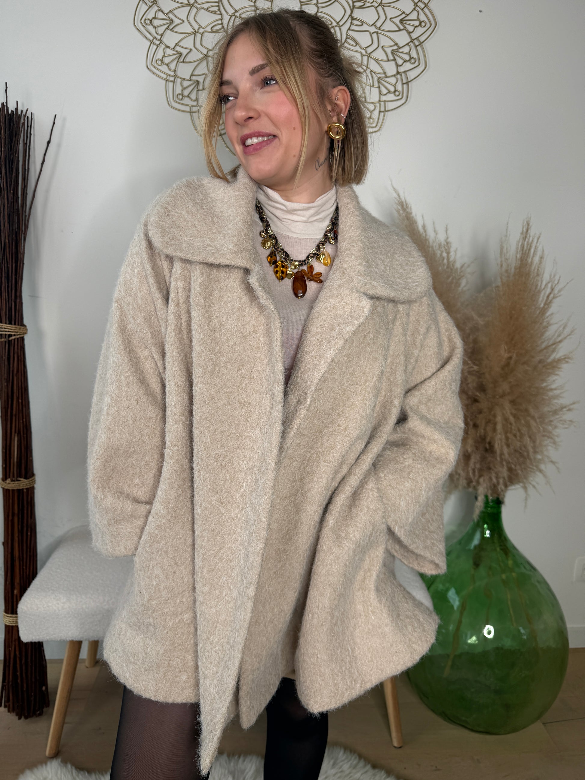 Un manteau cocooning et ultra-féminin qui allie douceur, volume et élégance.