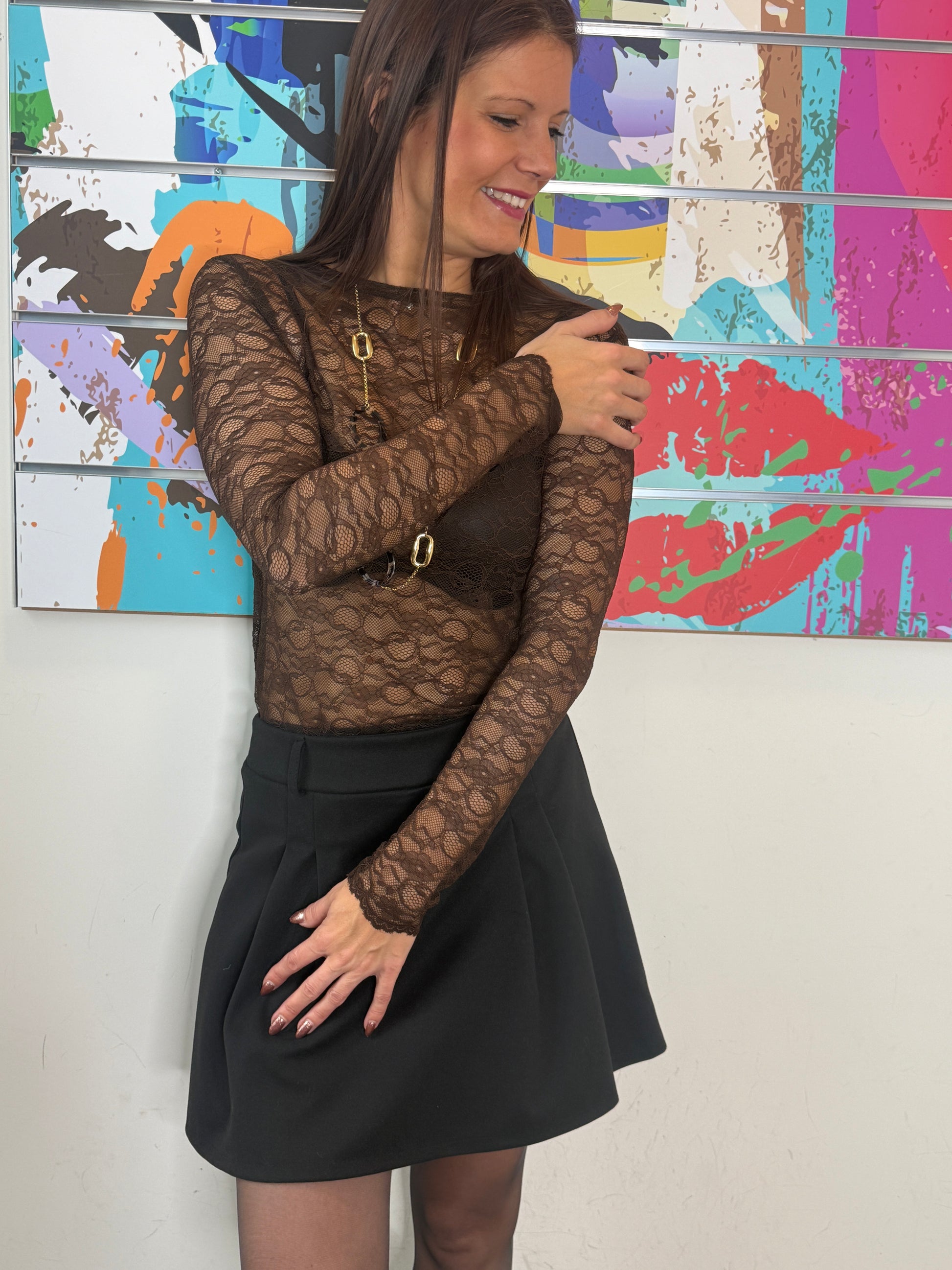 Un top en dentelle, son jeu de transparence sublime la silhouette et apporte une touche raffinée à vos tenues, de jour comme de soirée.
