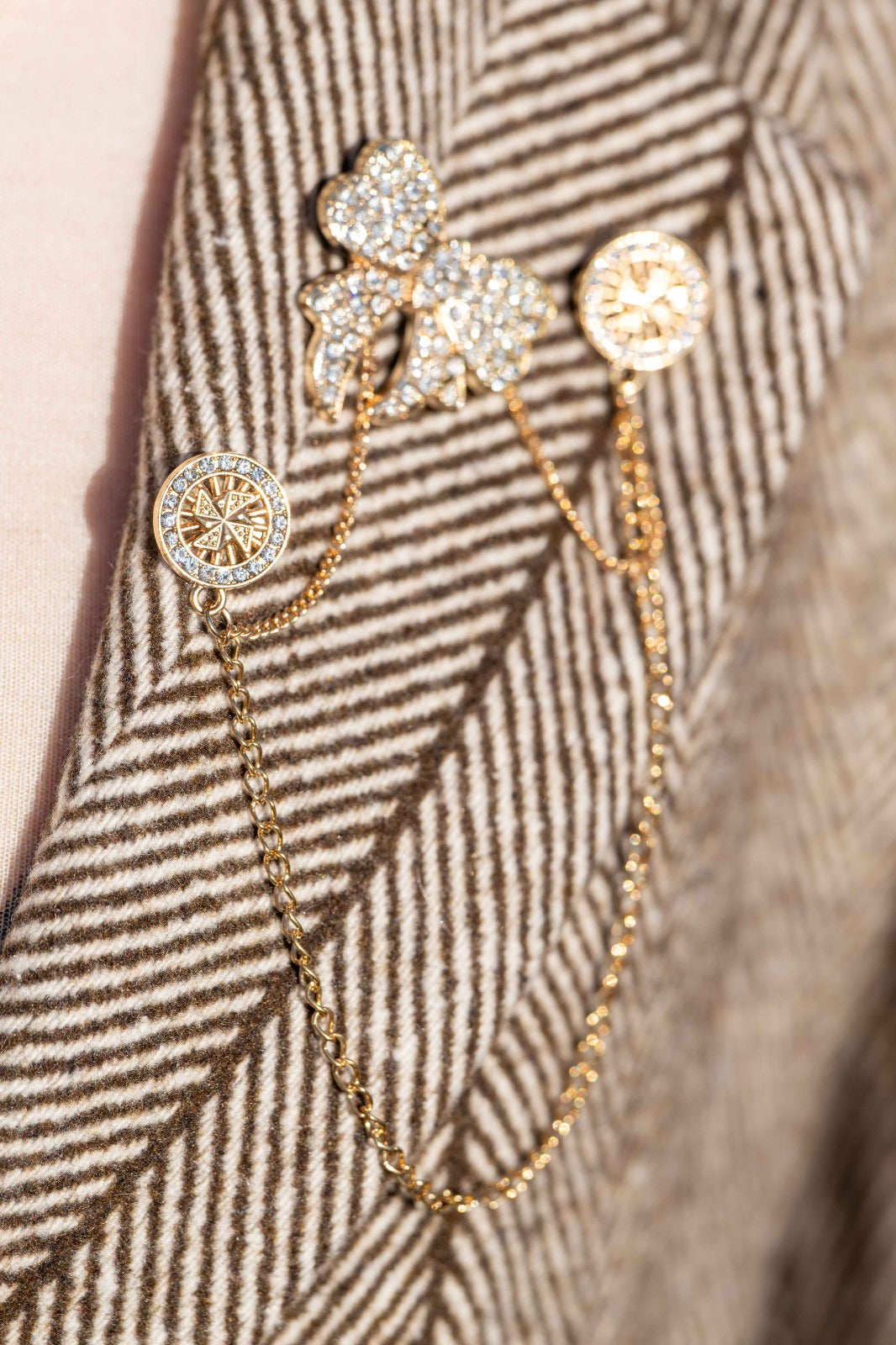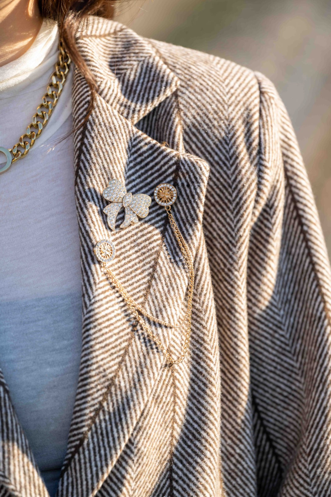 Avec sa matière effet chevron et sa coupe droite, il complète à merveille la jupe assortie pour un look chic et intemporel.