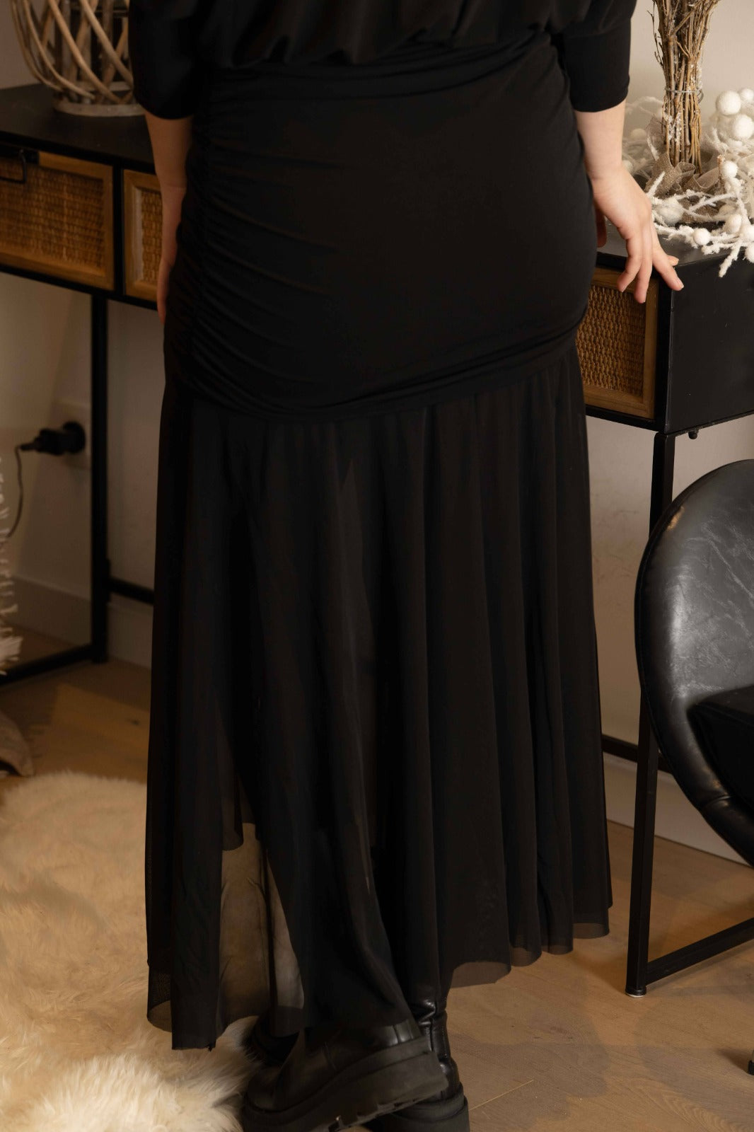 - Jupe longue fluide en voile transparent (doublée sur le haut)