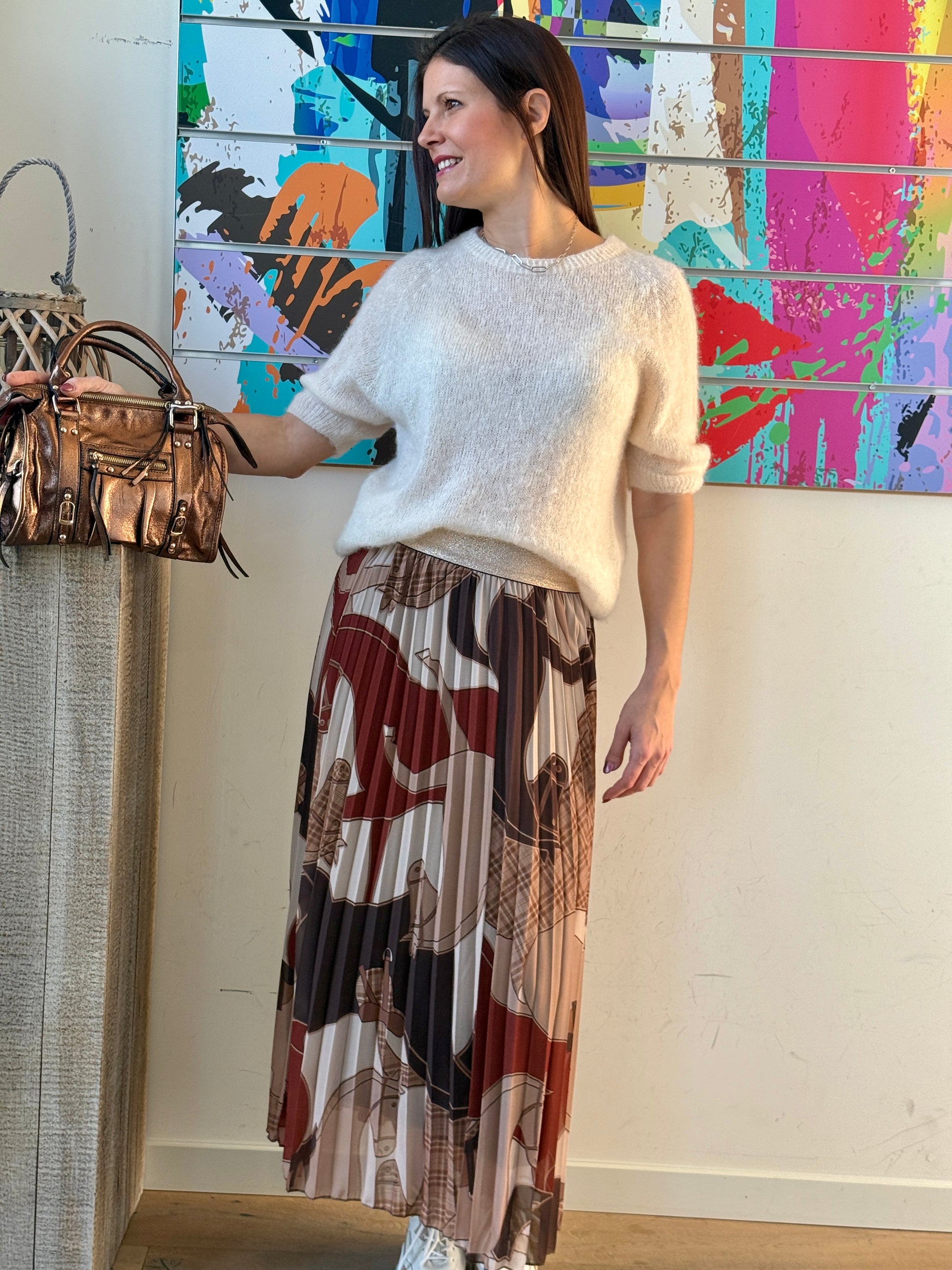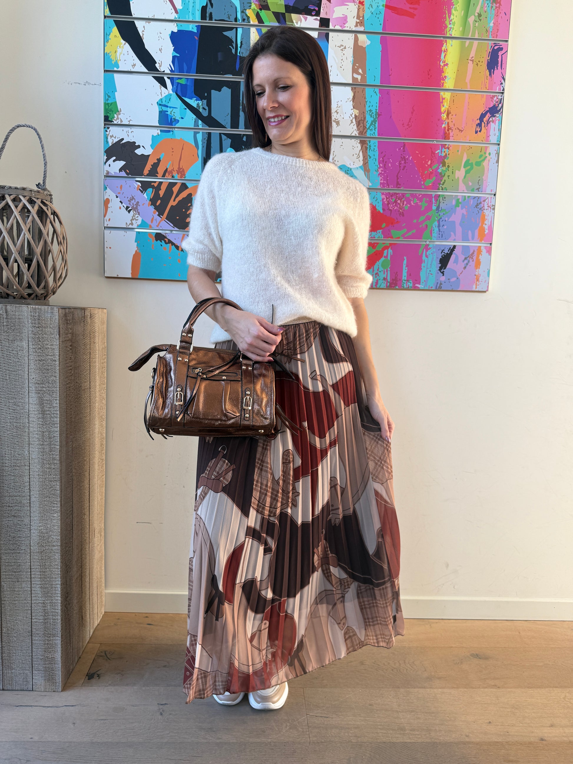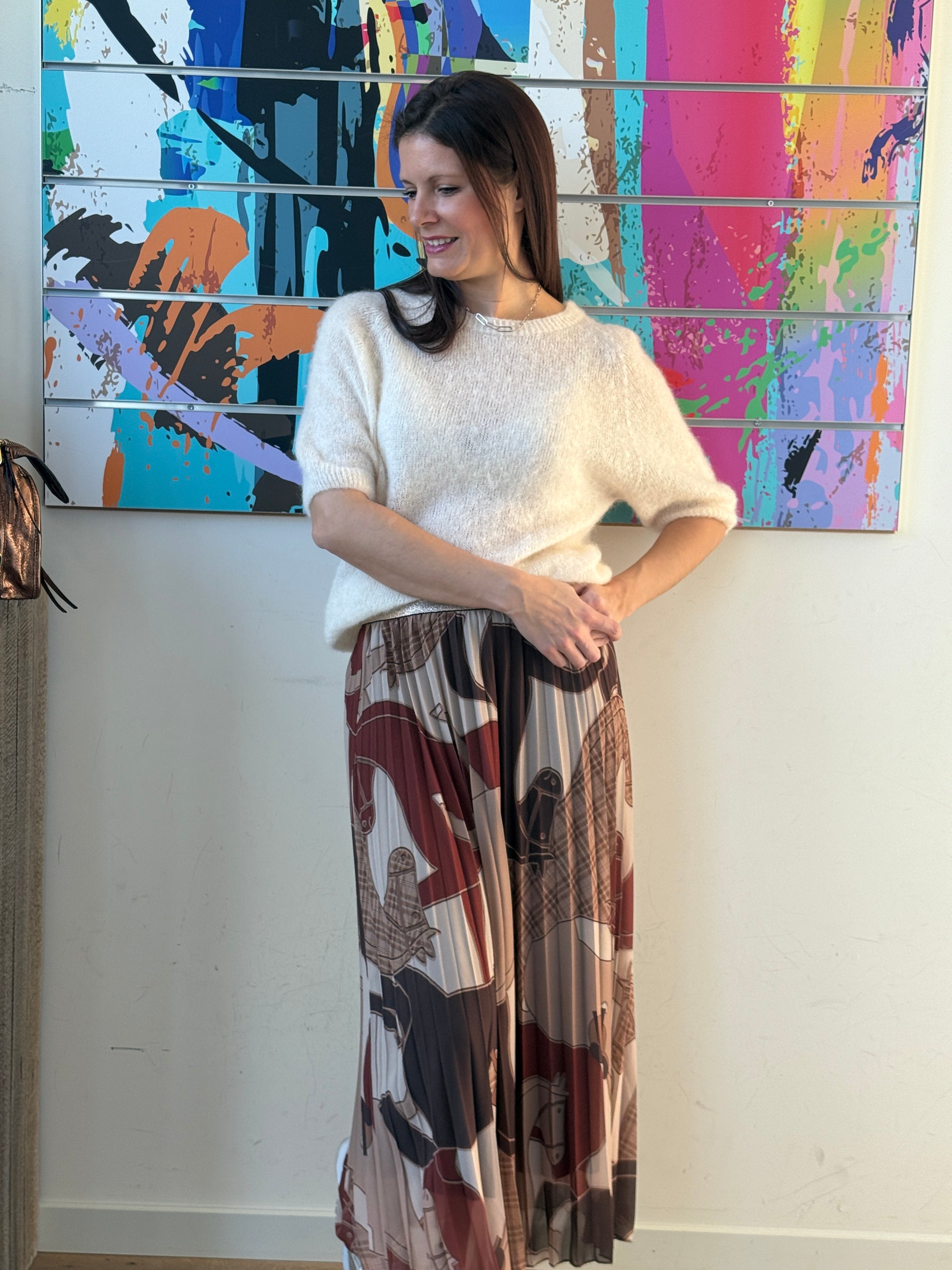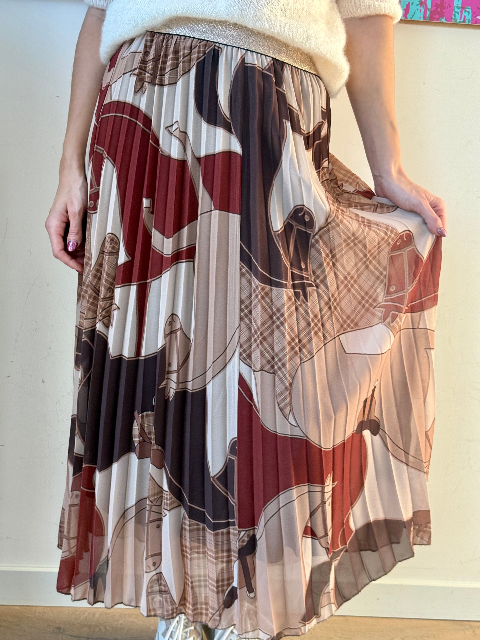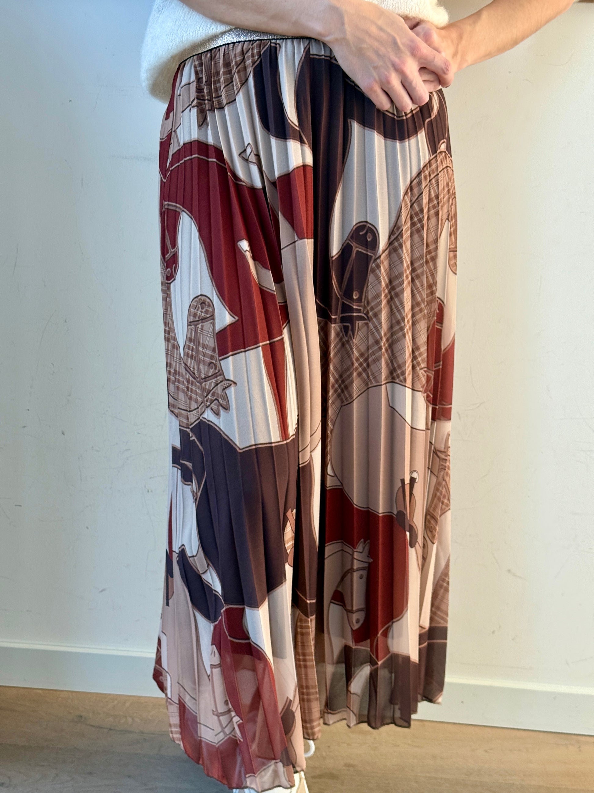 Jupe longue plissée à l’imprimé équestre, originale et pleine de caractère.