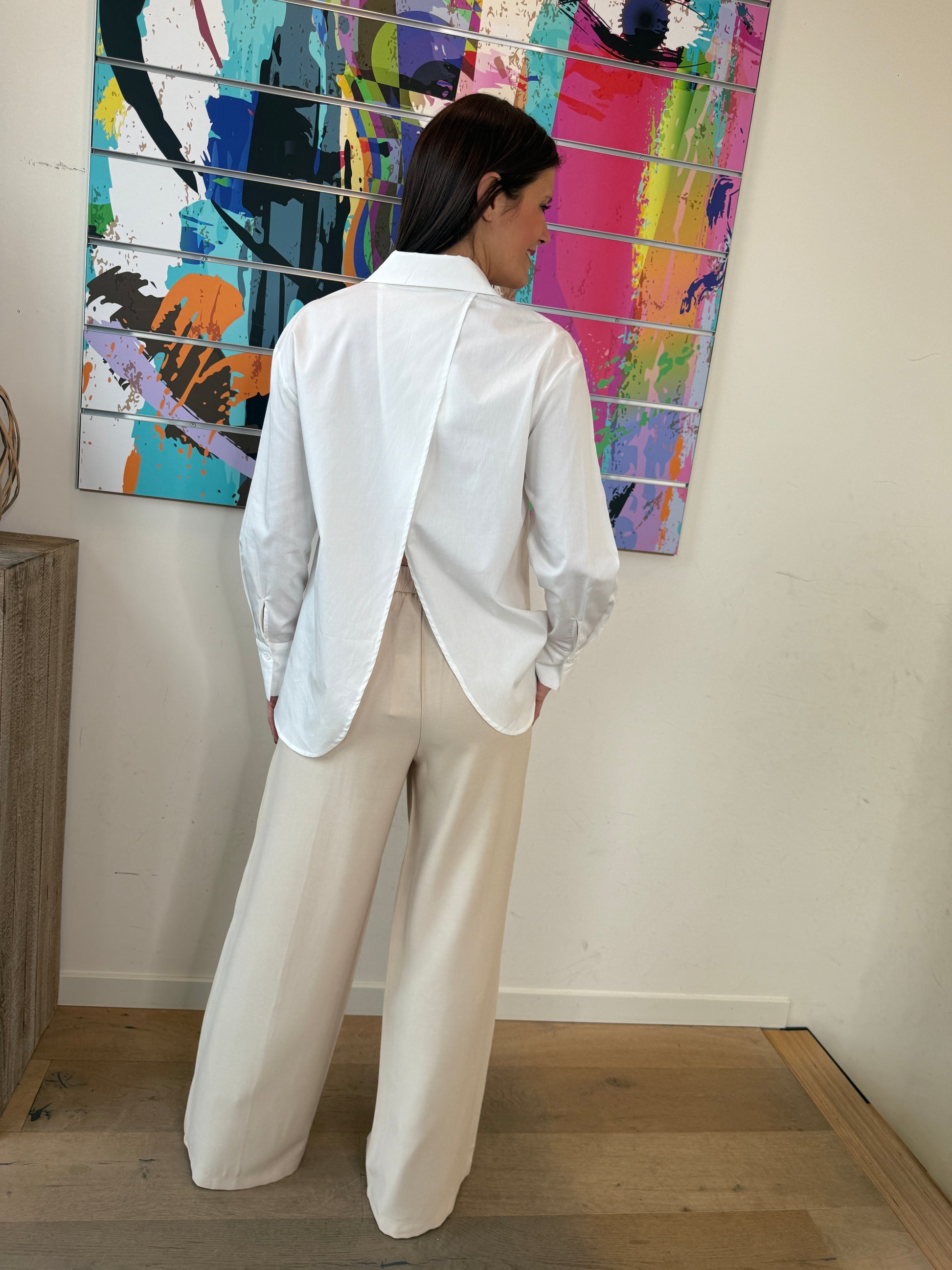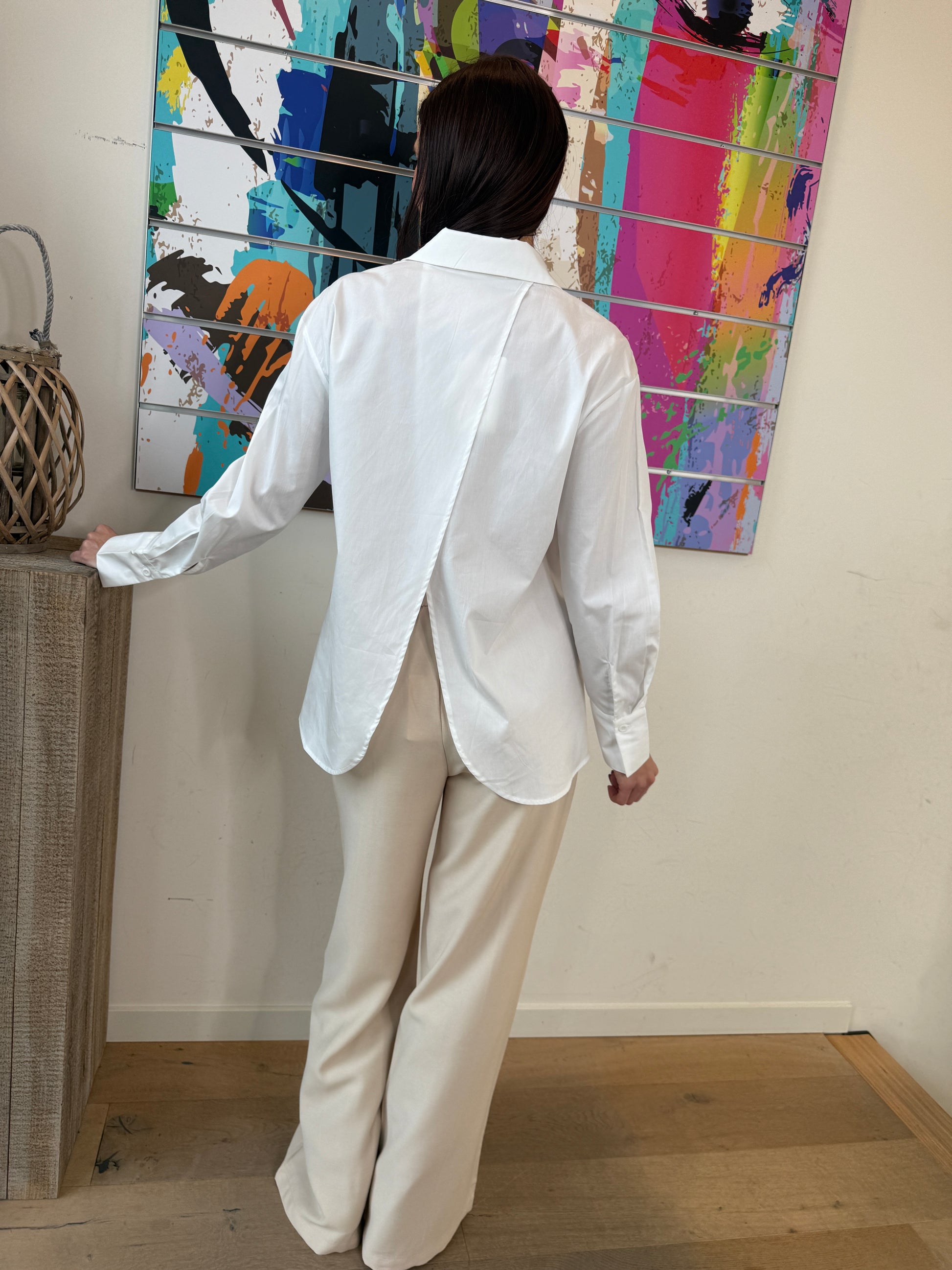 Un chemisier intemporel revisité avec un joli détail dans le dos, parfait pour une allure chic et naturelle au quotidien.