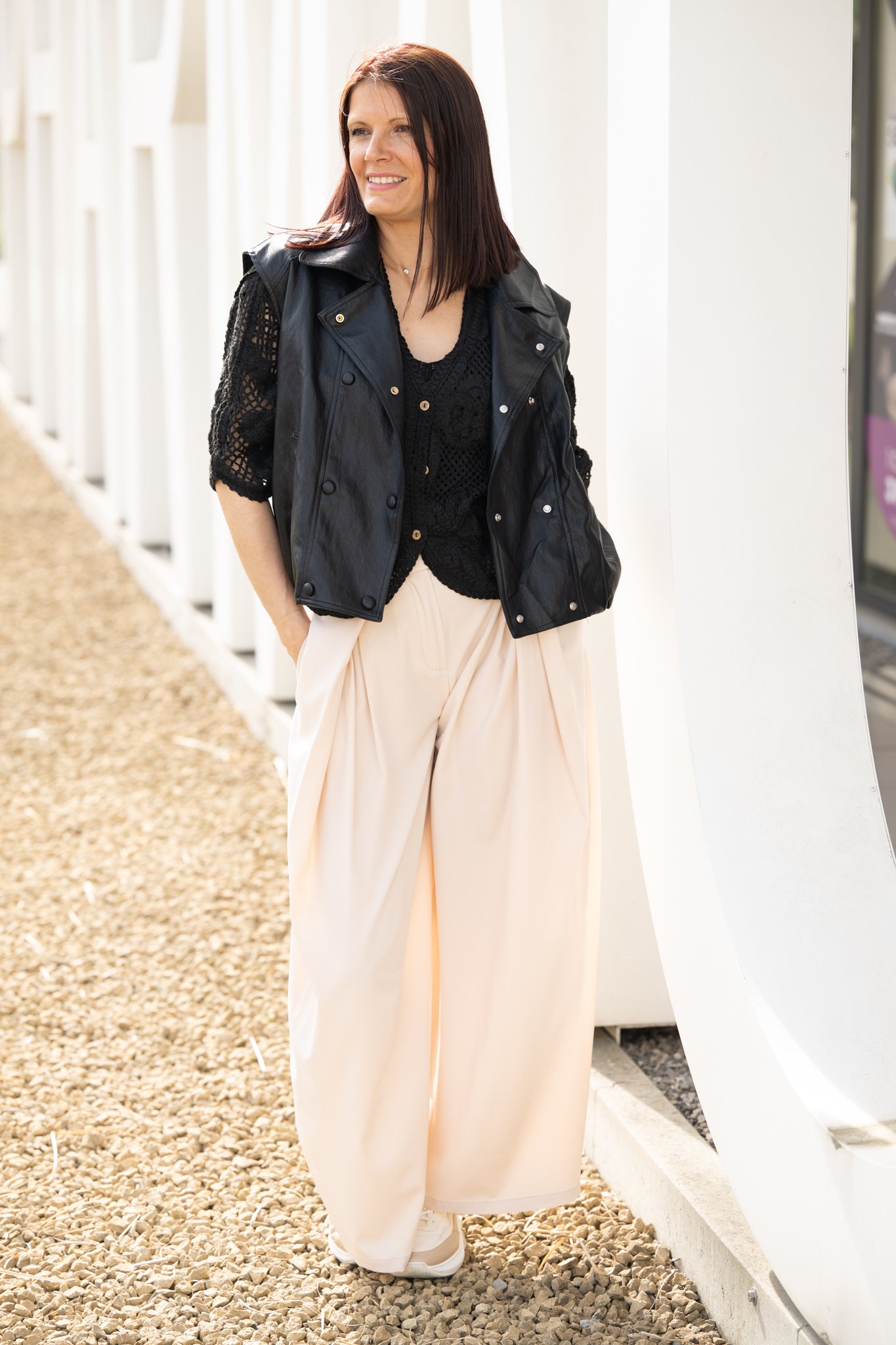 Portez-la sur une blouse en dentelle pour casser le côté rock ou avec un total look noir pour un effet ultra stylé