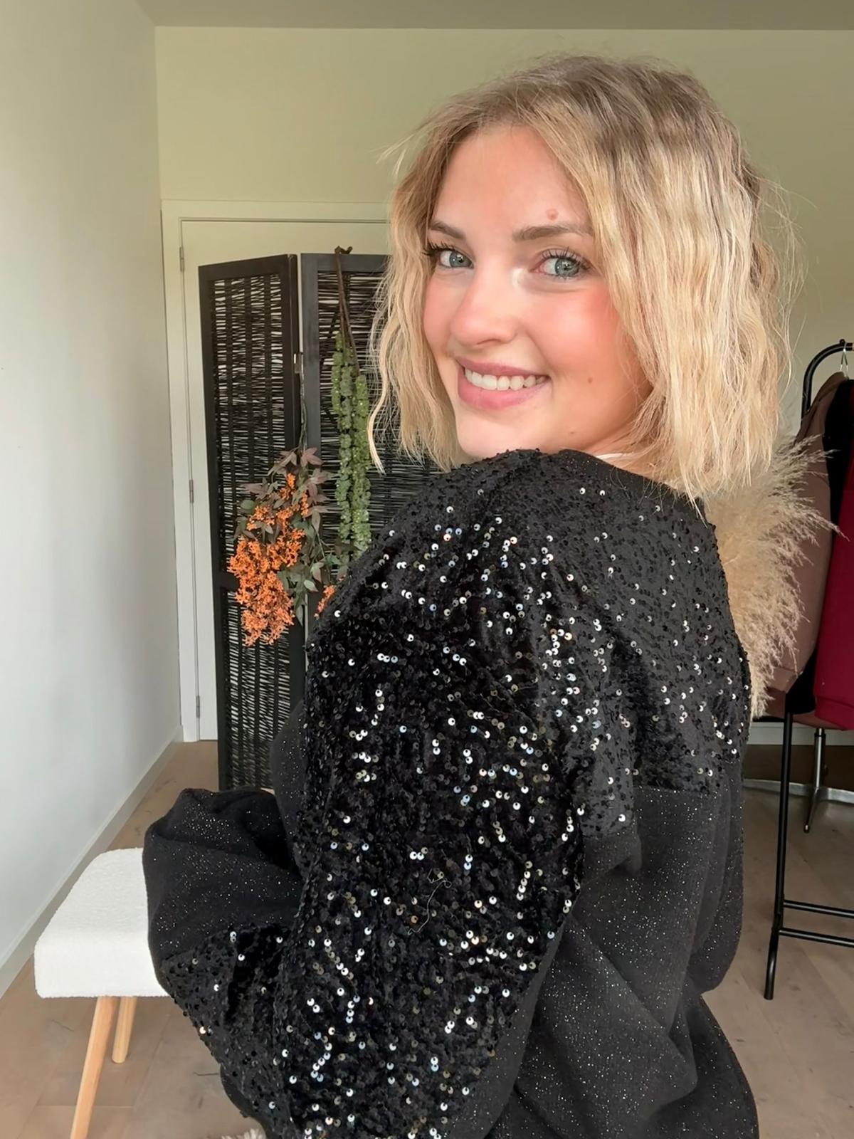 Confortable et lumineux, il associe une maille douce légèrement pailletée à un haut orné de sequins ton sur ton. Un duo parfait pour un style cocoon chic qui ne passe pas inaperçu.