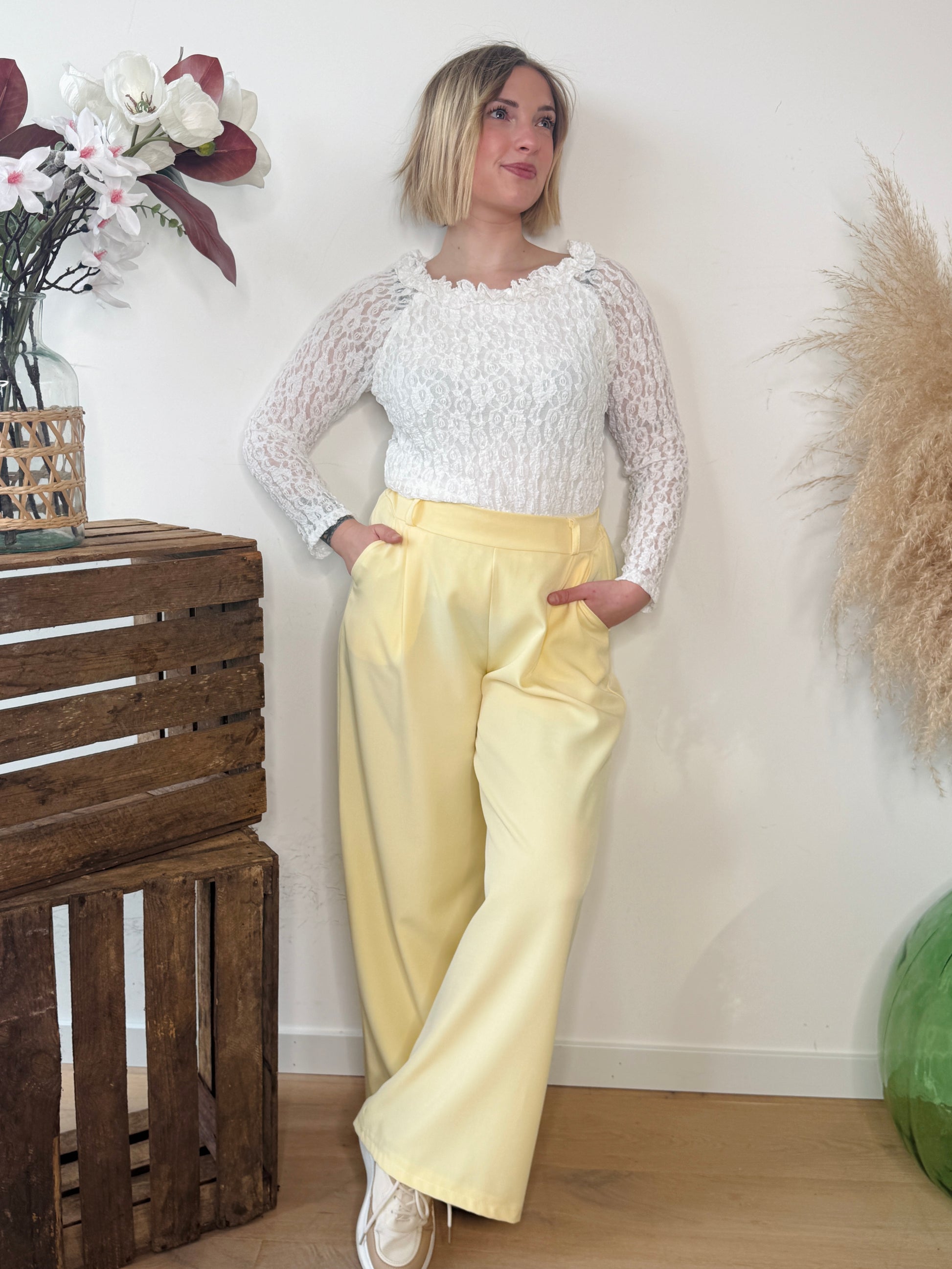 Un pantalon fluide et lumineux, à la coupe élégante, pensé pour allier confort et style.
