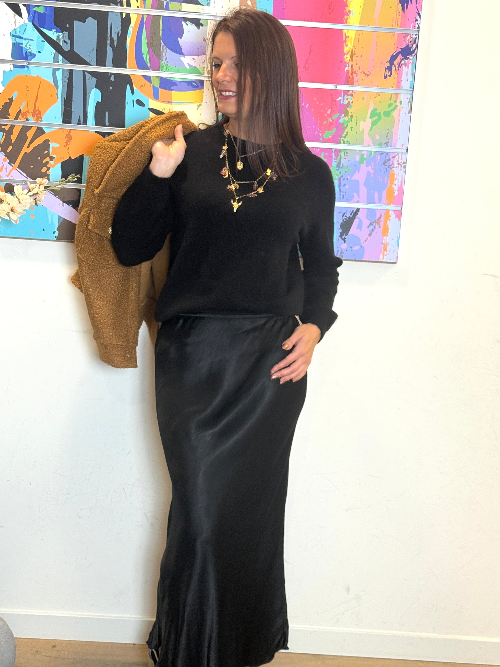 À porter rentré dans un jean taille haute ou sur une jupe fluide, ou palazzo pour un look cosy chic. Ajoutez une touche dorée pour réveiller la couleur !