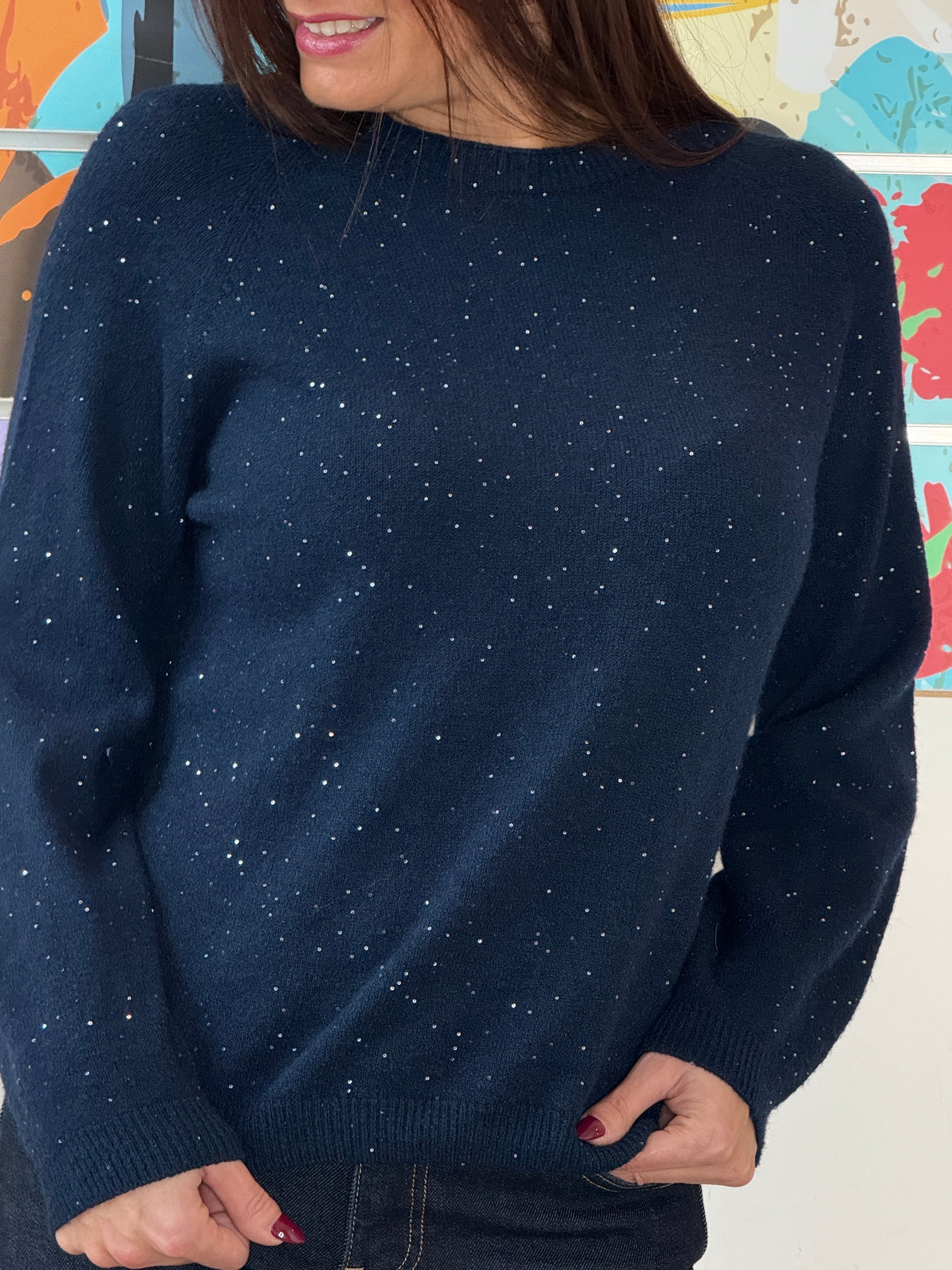 Une maille douce et lumineuse parsemée de petites paillettes pour un look chic, même en toute simplicité.