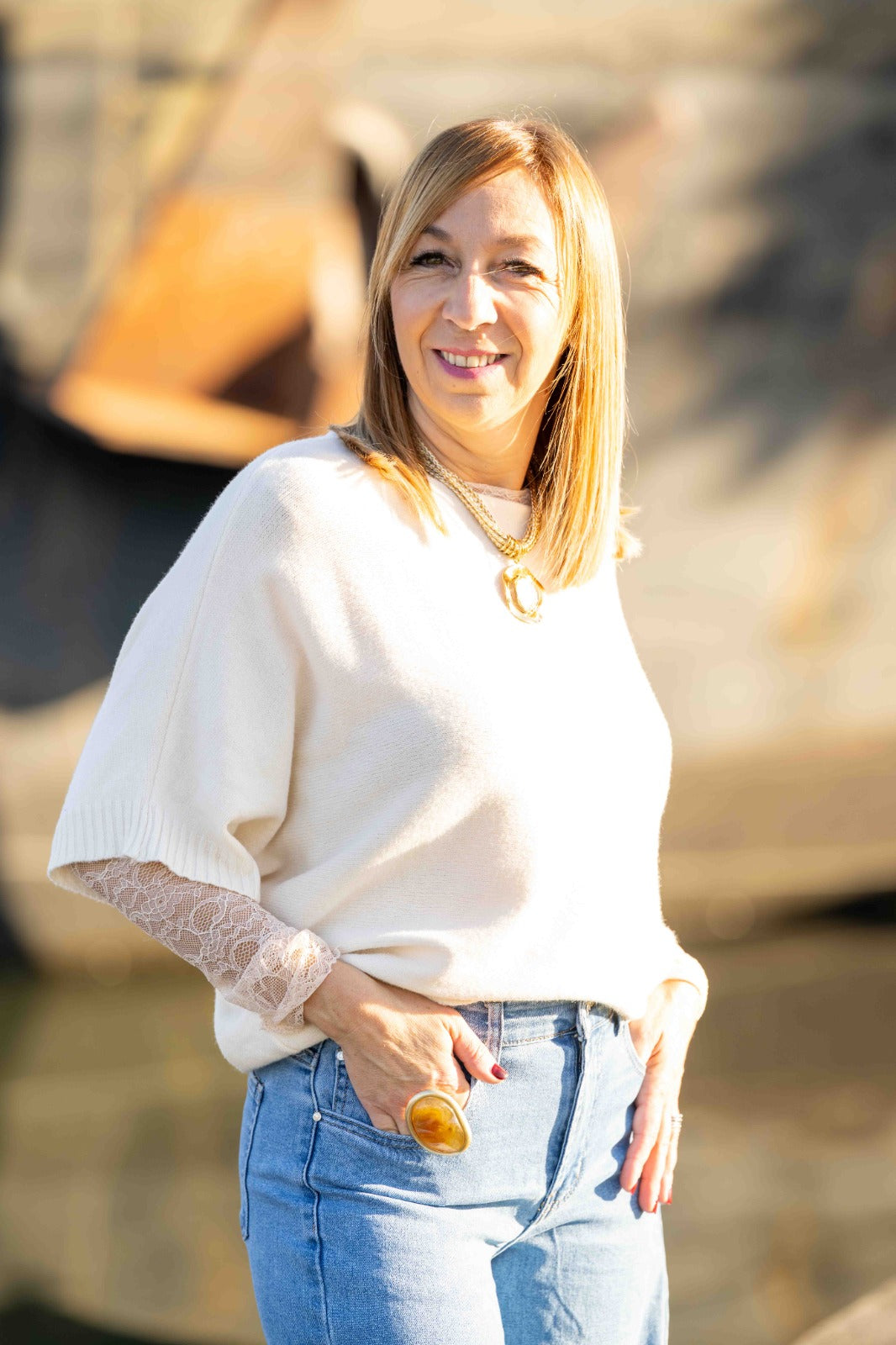 Un pull doux et élégant qui joue sur les volumes, sa coupe chauve-souris et ses manches 3/4 lui donnent une allure fluide et moderne, parfaite pour toutes les silhouettes.