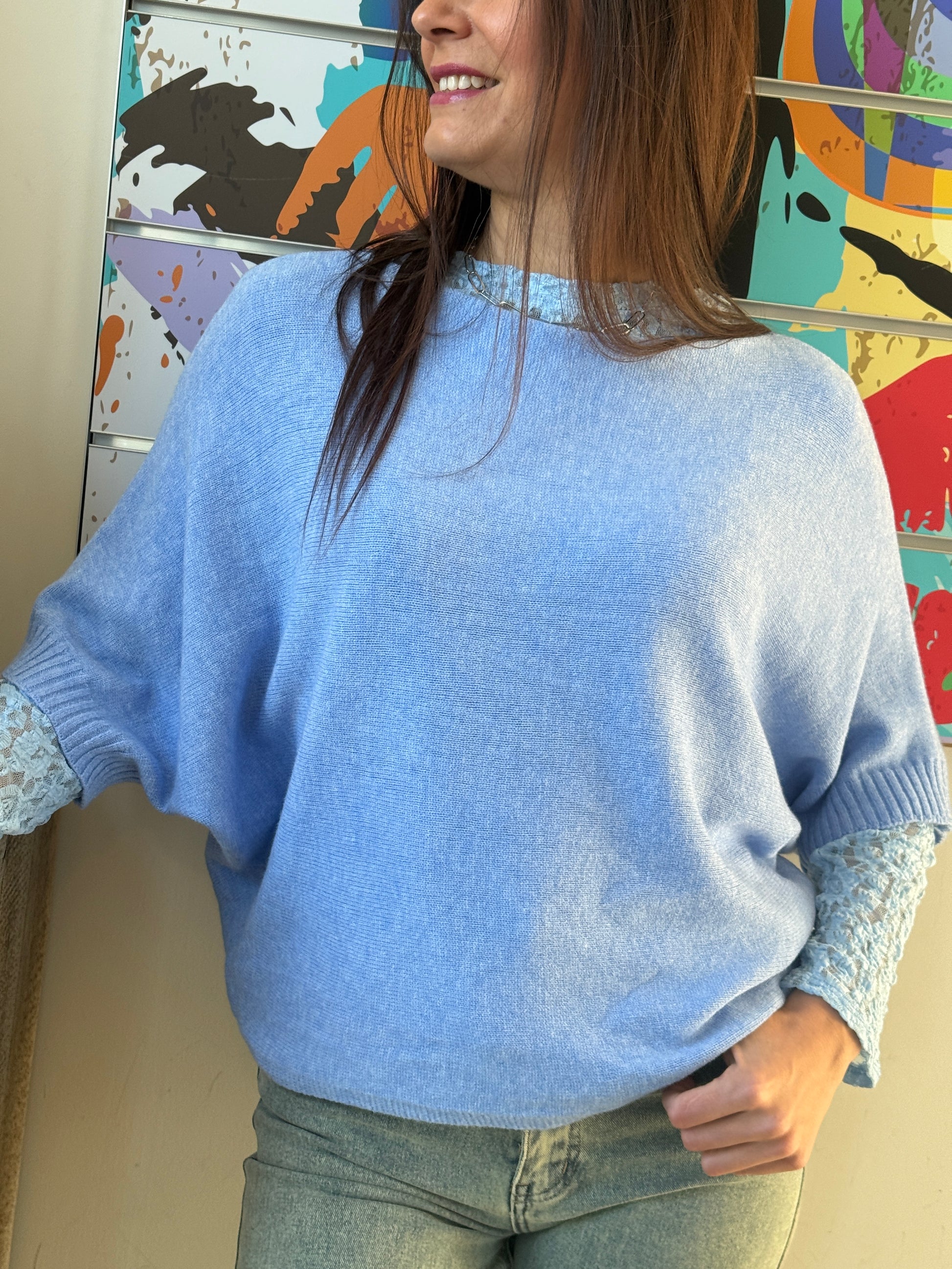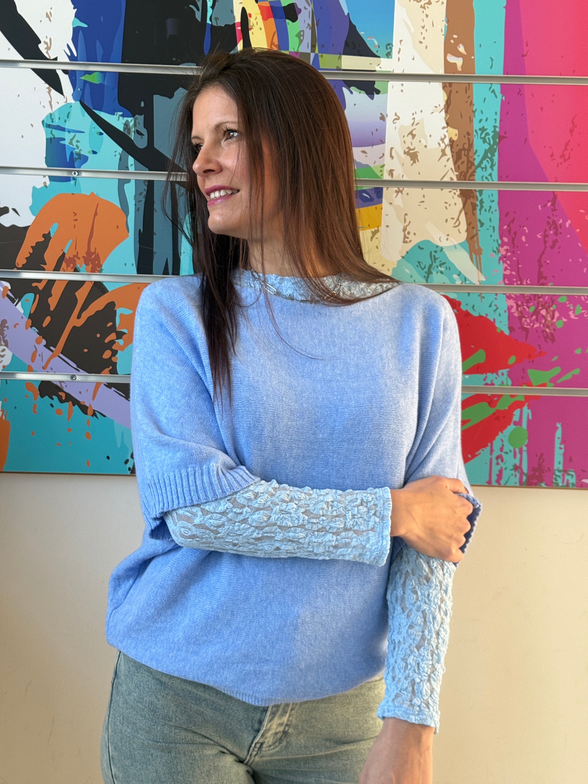 Un pull doux et élégant qui joue sur les volumes, sa coupe chauve-souris et ses manches 3/4 lui donnent une allure fluide et moderne, parfaite pour toutes les silhouettes.