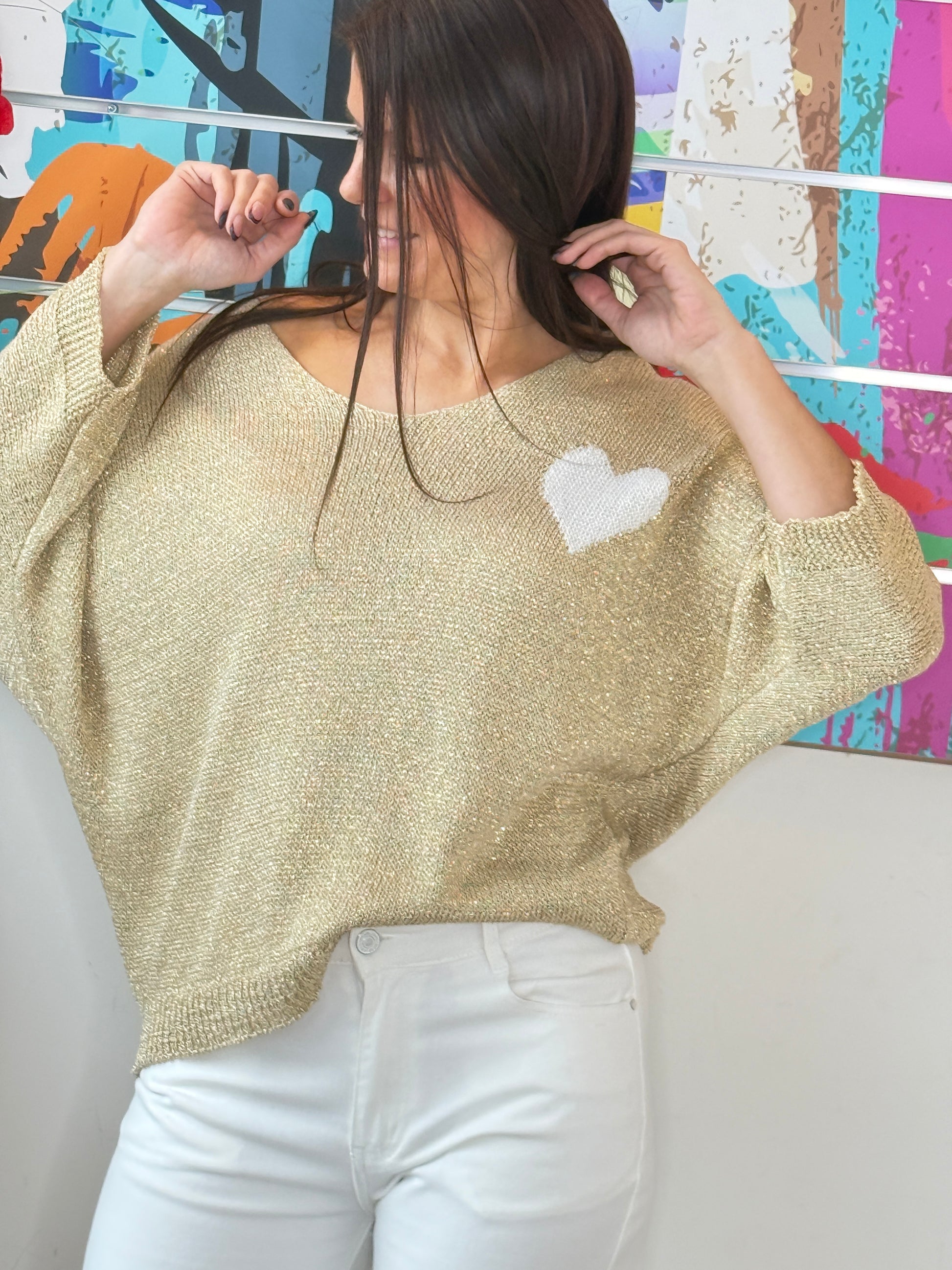 Un pull léger et lumineux, parfait pour la mi-saison et les beaux jours, avec une touche de brillance subtile.
