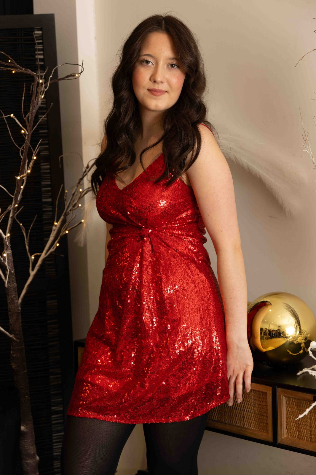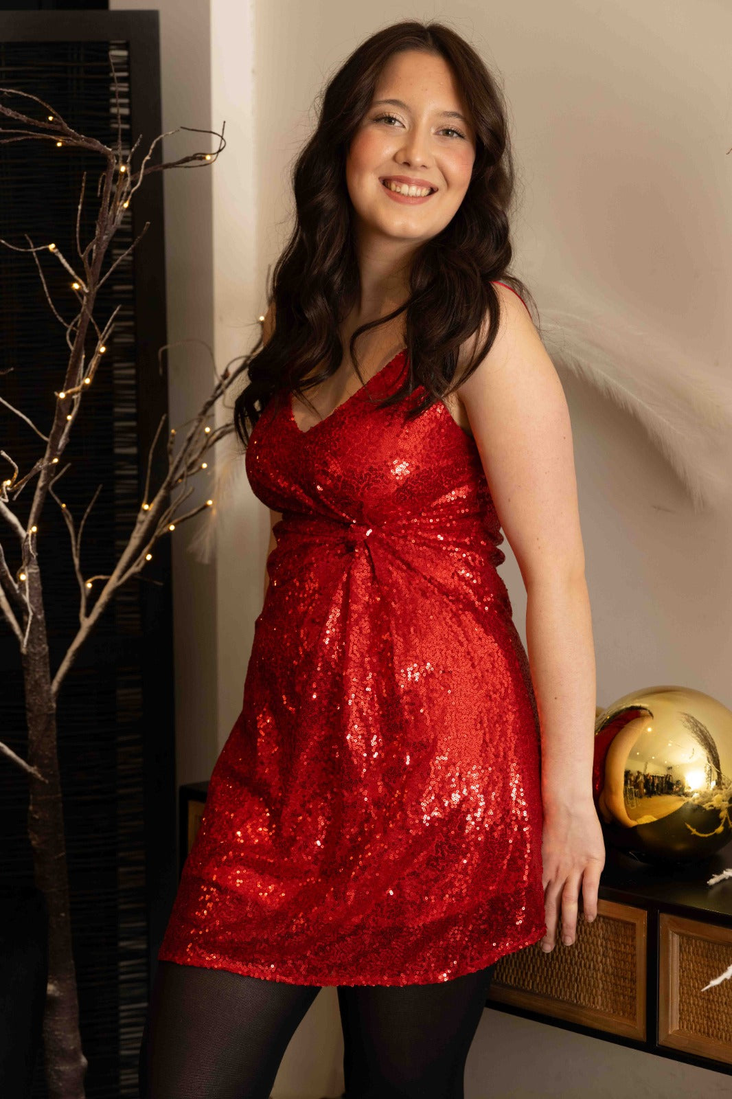 - Sequins rouges scintillants sur toute la robe