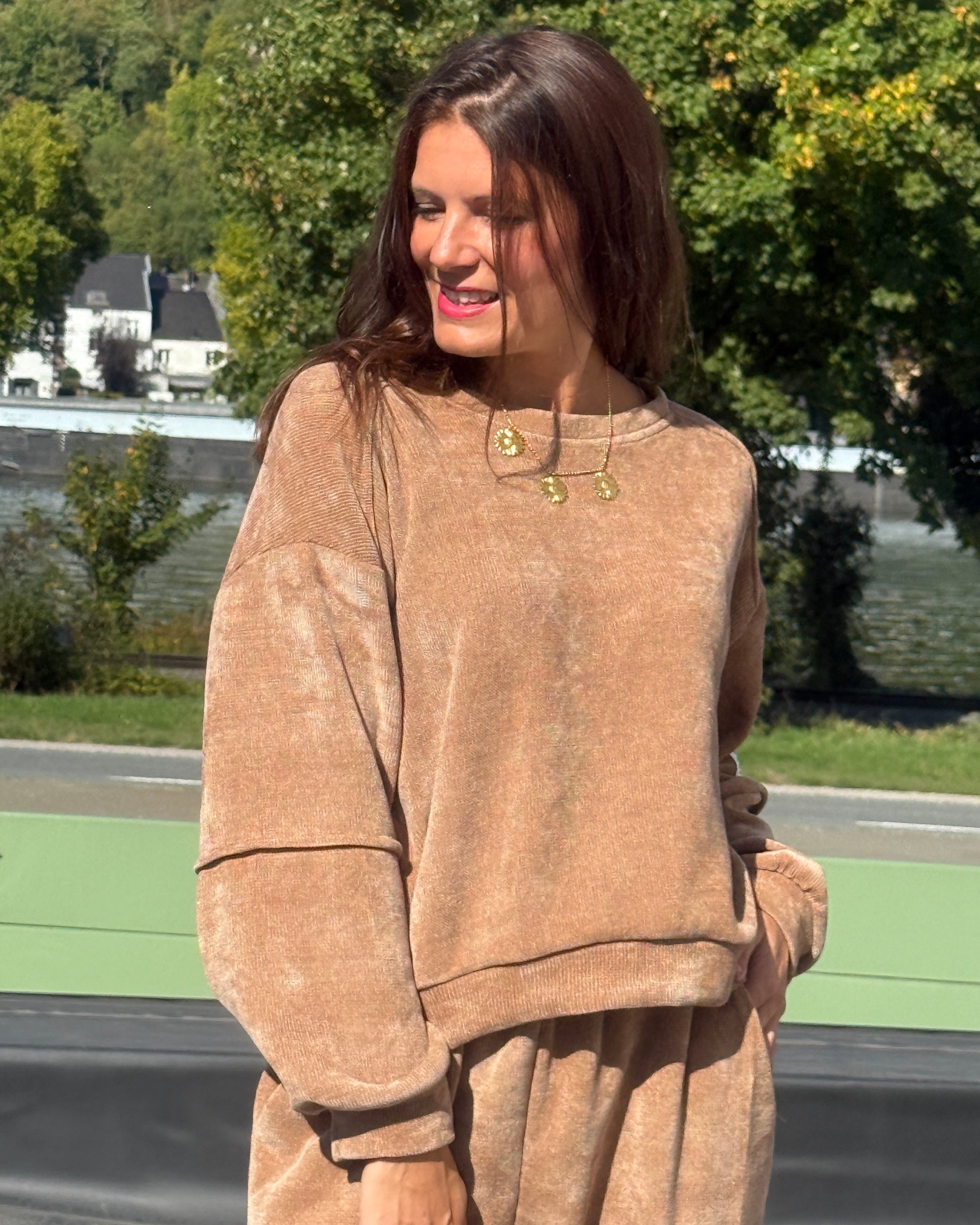 Un sweat doudou en velours côtelé fin pour un look casual et ultra-doux.