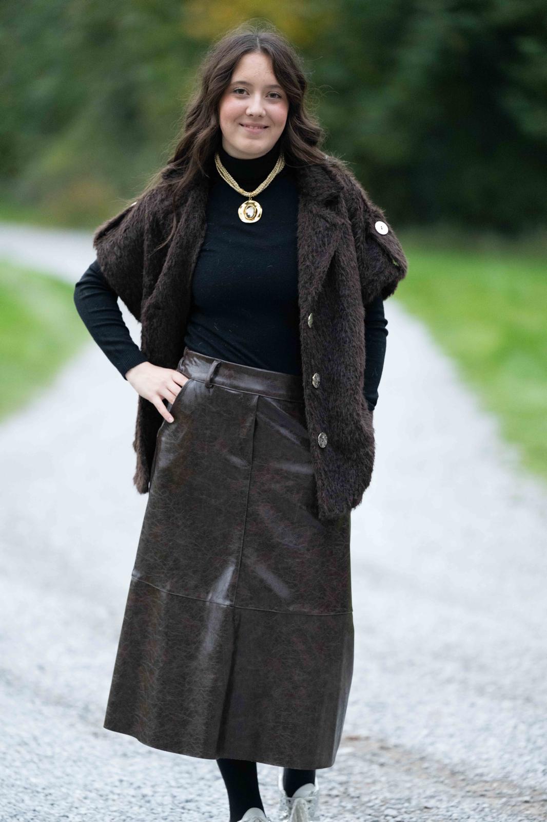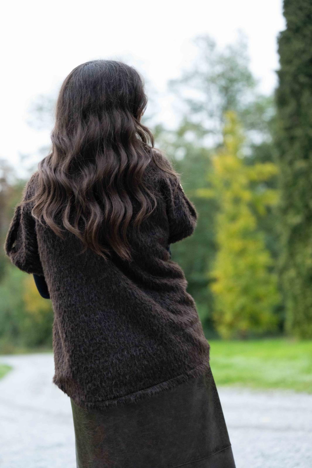 On craque pour cette veste sans manches au look tendance et cocoon à souhait. Sa matière duveteuse apporte douceur et confort, tandis que ses boutons martelés dorés ajoutent une note chic et moderne.